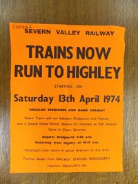 - 1974: The line reopened between Hampton Loade and Highley. It was also the Easter weekend, and saw 16,000 passenger journeys.