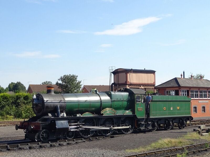 current | 09:02, 2 October 2025 | ![]() | 1,000 × 750 (136 KB) | Robin (talk | contribs) | GWR 6960 ''Raveningham Hall'' at Kidderminster in August 2019. The locomotive was on extended hire to the SVR from May 2019 until its boiler certificate expired in July 2021. |