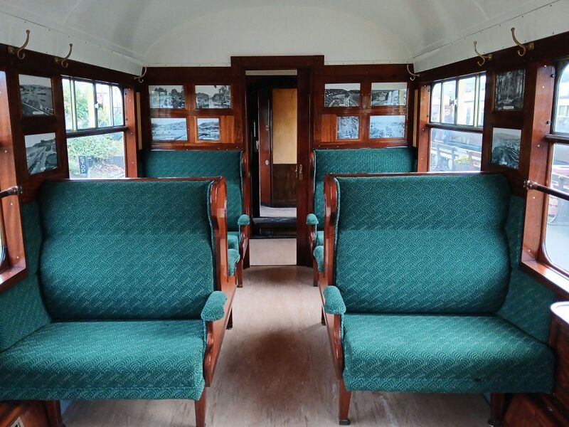 | current | 15:27, 30 October 2025 | 1,000 × 750 (184 KB) | Robin (talk | contribs) | GWR 9581 entered service in September 2025 as a wheelchair-accessible buffet car, having been created by rebuilding the bodyshell of GWR Collett Bow-Ended Coach No 5043. An interior view of the saloon seating. |