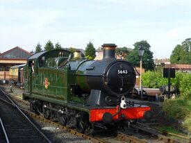 5643 left Barry in September 1971, the 16th locomotive to do so.[2] The locomotive is now owned by the Furness Railway Trust, a Charitable Incorporated Organisation now based at the Ribble Steam Railway in Preston, and is described by them as “The Trust's roving ambassador “.[3] 5643 first ran under its own steam in November 2005 and hauled its first passenger train in 43 years the following September. It has visited many preserved railways.[4]