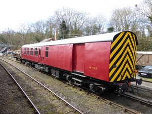 34754 arrived on the SVR in November 1997 from Peterborough. It has been converted for use as the Civil Engineers Mess and Tool Van, with the body of this coach put on the bogies of coach 34414 (the body of 34414 was scrapped). It currently (March 2015) carries the Departmental number ADB975128, and is owned by the SVR P.Way Fund. |