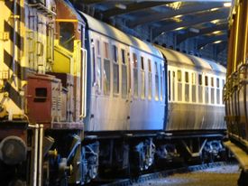 16169 was withdrawn from service by BR at Heaton, Newcastle in 1988, where it had been in use on cross-country services. It arrived on the SVR in August 1989 been purchased by SVR(H).[1] It has seen use in the BR Maroon set, but by 2006 was described by the Railway Heritage Register Carriage Survey as "externally very shabby and due for refurbishment". When photographed in July 2015 it was stored in Kidderminster Carriage Shed awaiting overhaul.